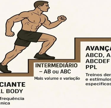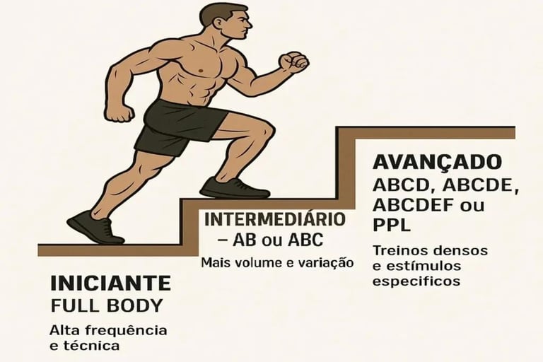 Para iniciantes, o mais indicado é começar com algo simples, como Full Body ou AB, e evoluir com o tempo.